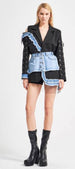 The Couture Clash Set Two-Piece: Sculpted Jacket + Detachable Denim Utility Belt Where haute couture meets street innovation. The Couture Clash is a powerful two-piece masterpiece designed for the woman who commands attention without speaking. This set fuses crisp white tailoring with distressed denim accents, sheer tulle layers, and sculpted asymmetry — creating a look that is both avant-garde and undeniably wearable. The detachable denim utility belt with functional pockets transforms the silhouette instantly, letting you switch between clean couture polish and edgy street-inspired strength. What’s Included ✔ Sculpted White Couture Jacket✔ Detachable Denim Pocket Belt⸻ Jacket Features• Off-shoulder cutout with structured lapels• Denim-fringe detailing tracing the neckline and sleeves• Soft tulle inserts for an ethereal, layered contrast•  Eyelet-laced sleeves for a statement accent • Flared waistline for a refined couture shape • Sheer tulle underlay peeking from the hem for movement • Full-length tailored sleeves with denim cuff detail• Denim Utility Belt Features • Distressed, light-wash denim • Functional oversized pockets • Button-down front with fringe edge • Elasticized back waist for comfortable cinching • Instantly transforms the jacket into a multi-textured couture armor ⸻Why It’s a Tashelion Showpiece The Couture Clash is more than fashion — it’s an identity. A head-turning mix of elegance and rebellion, softness and strength. Wear it with boots for an editorial street look, or elevate it with heels for a high-fashion evening moment. This is the Tashelion woman: fearless, refined, unforgettable. • Made in Turkey